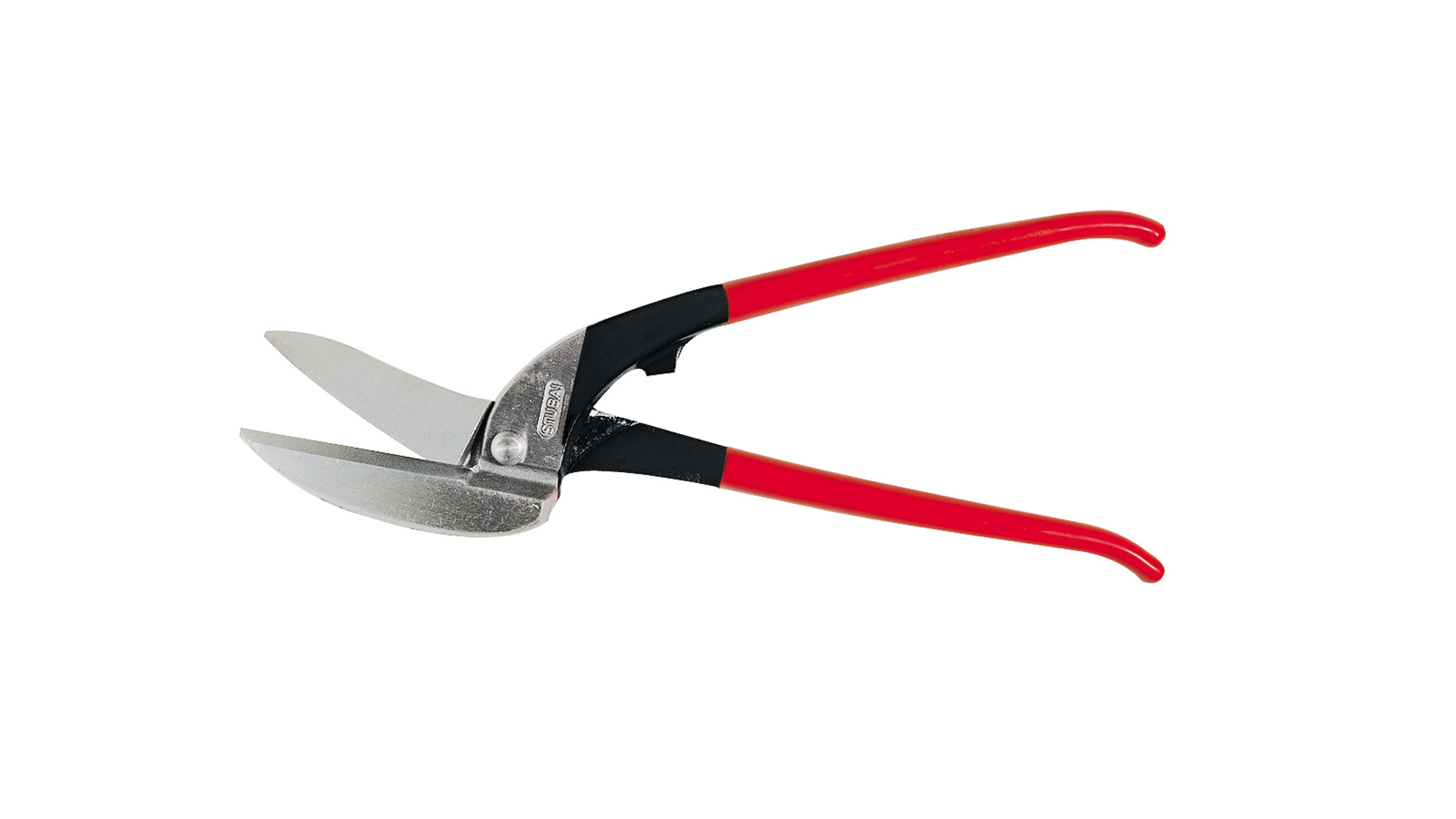 Platesaks for lange, rette kutt. Med polert hode og induksjonsherdede skjær. Plastbelagte håndtak. Lengde 350 mm.