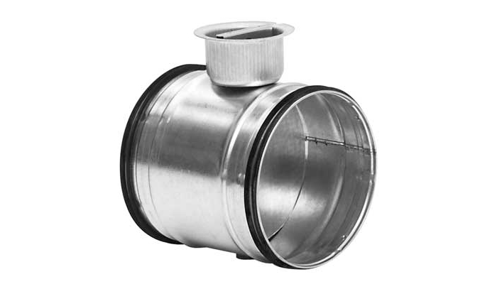 Har et vribart, stengeblad.. Bladet er trinnløst justerbart 0-90 °. Spjeldet brukes når du har mindre strenge krav til avstengingskapasitet. Spjeldet tillater en isolasjonstykkelse på ca. 50 mm.